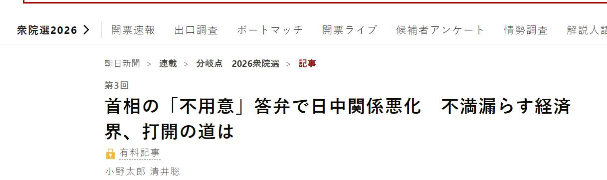 🔻日本国内现在有两种对立宣传观点:一方宣传高市早苗如果在2026年2月8日的众议院中获胜,东大就会被迫改变对日政策(图1路透社)。🔻选举前在野党阵营(尤其是中道改革连合等)则宣传:如果高市早苗败选,东大才会改变政策(图2朝日新闻)。🔻主流媒体基本没人想过“无论高市怎么选,东大都不会改变政策”的可能性。日本执政联盟将获众议院过半议席热点现场海外新鲜事