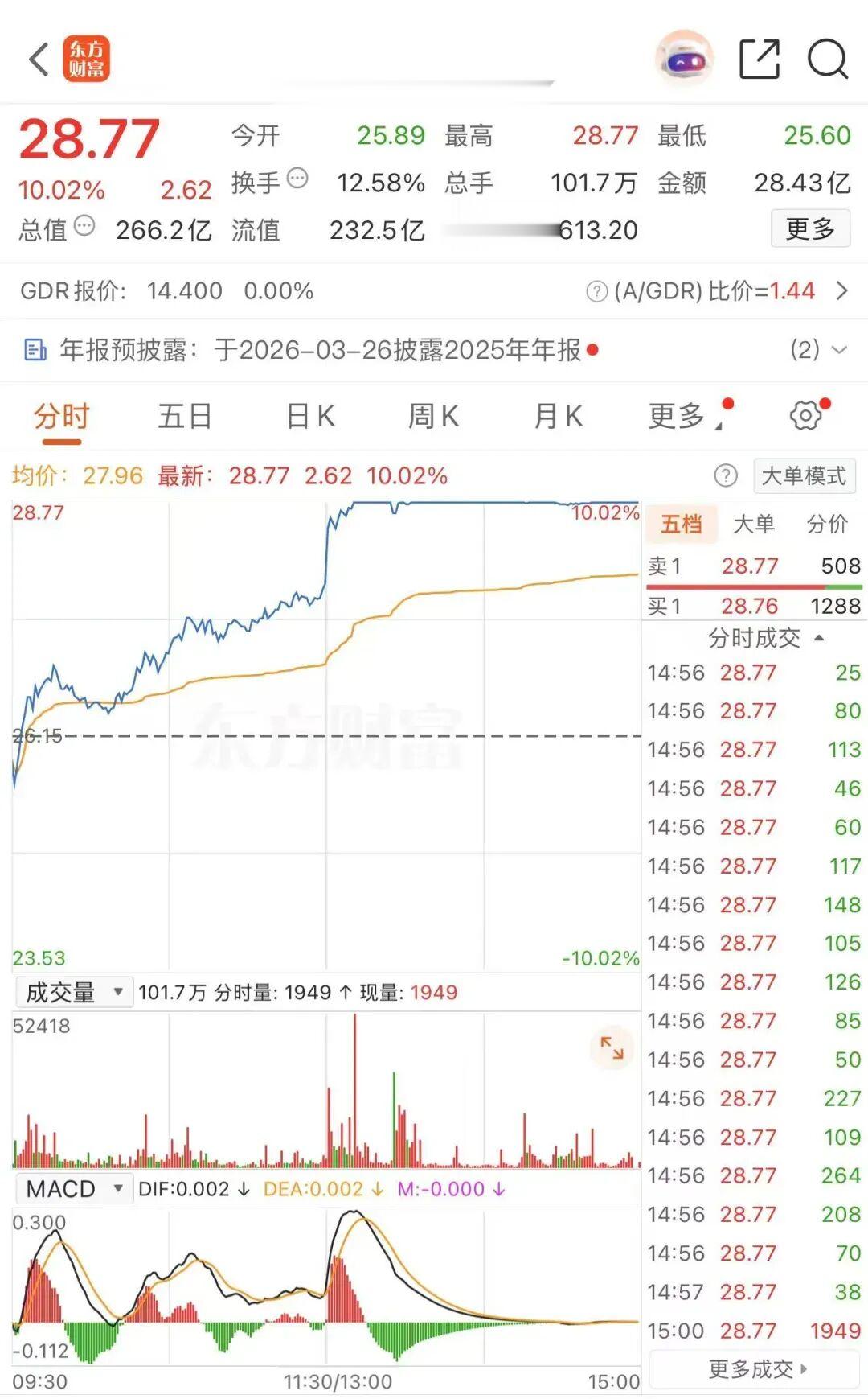 时代电气:披露业绩快报,公司2025年实现营业总收入287.61亿元,同比增长15.46%;实现归属于母公司所有者的净利润41.05亿元,同比增长10.88%;基本每股收益3元。