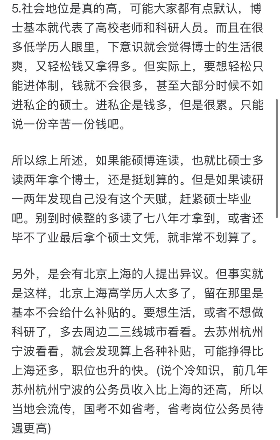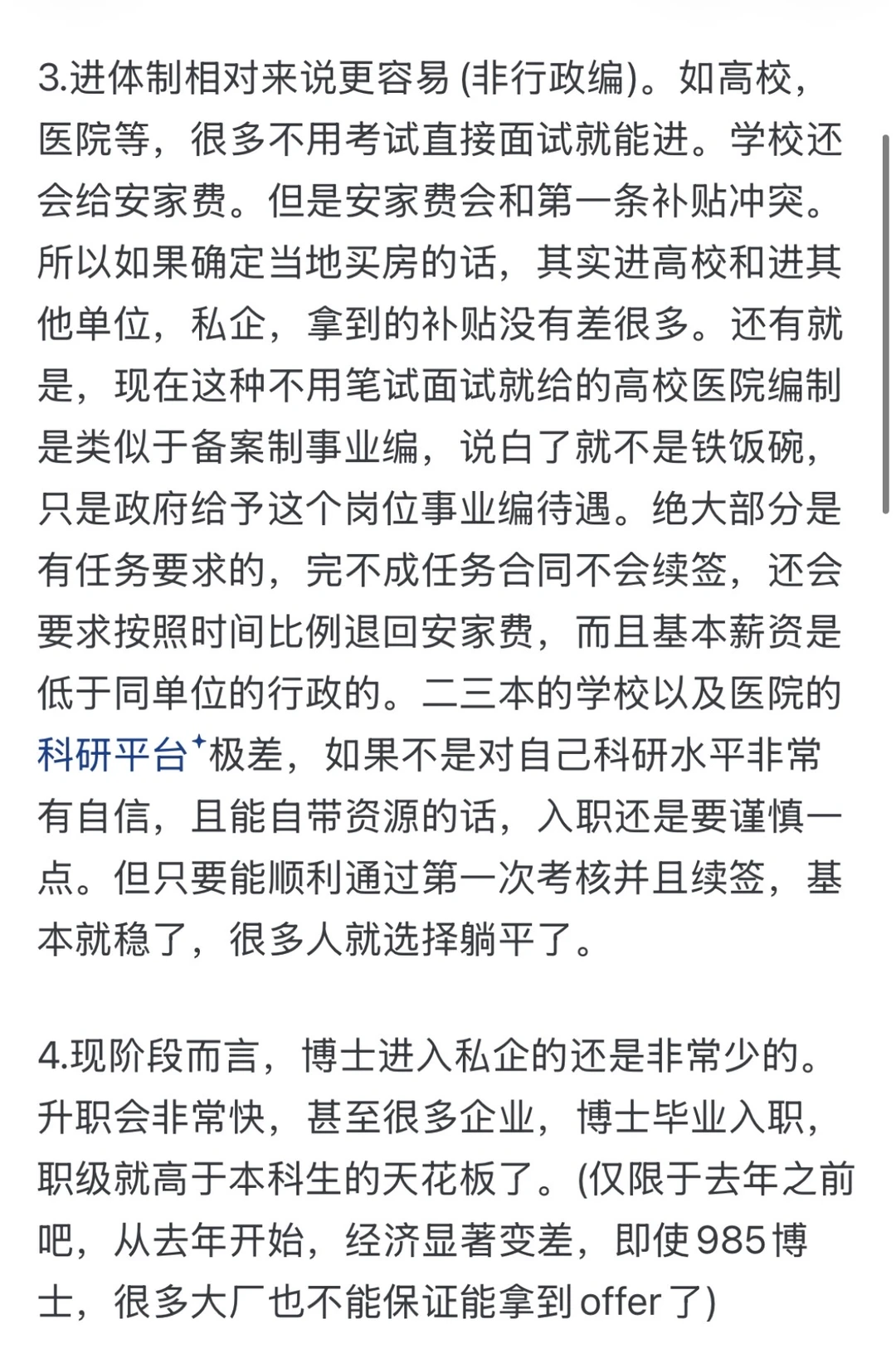 我学历是硕士,但是同学亲属很多是博士,且体制内私企都有,所以从两者受到的差异其实可以谈一谈。