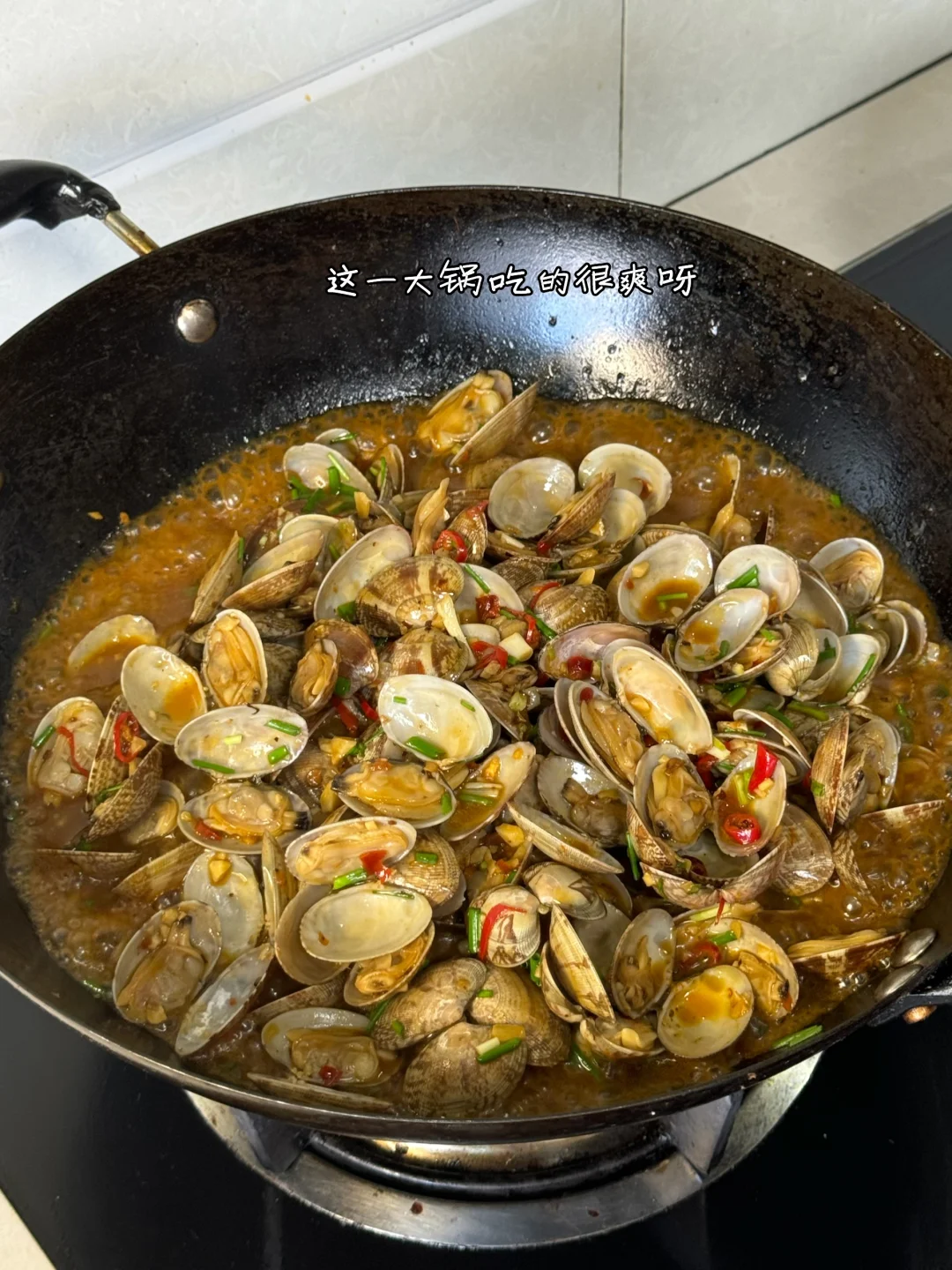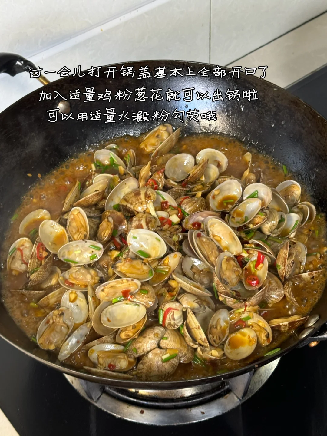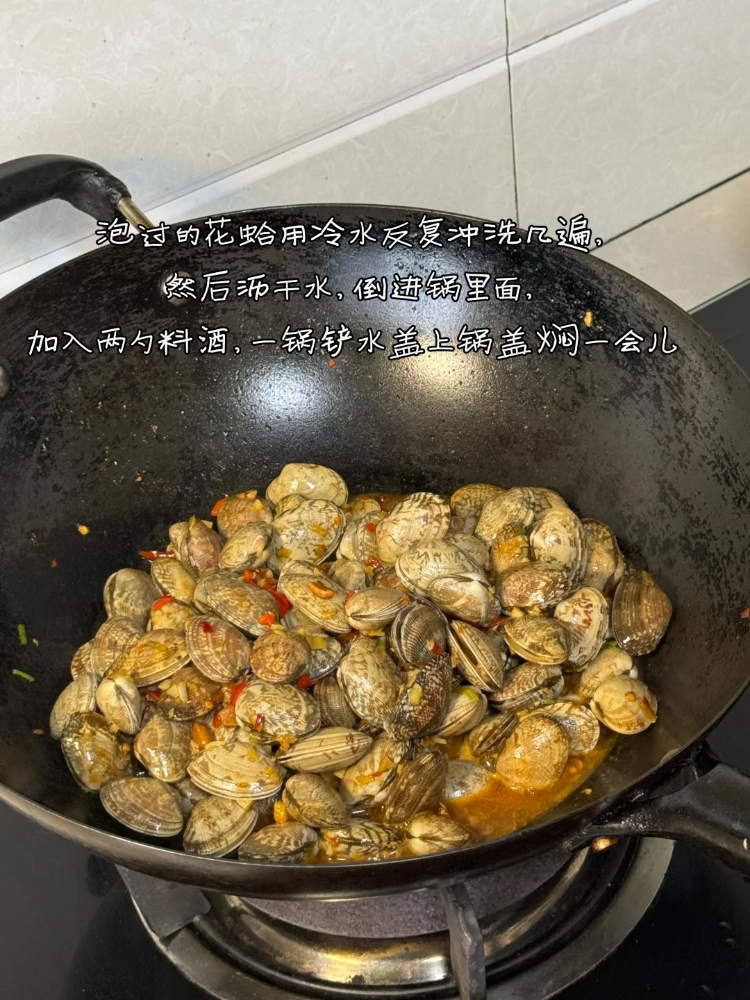 1. 花蛤菜市场买回来以后加入少许盐和油搅拌均匀,泡几个小时,让它把沙子涂干净 2. 喜欢吃辣的多切一点小米辣,然后就是生姜大蒜沫也多一点,少许葱白段 3. 小火爆香生姜大蒜小米辣,葱白段加入一勺薄盐生抽,一勺蚝油,一丢丢糖,一勺豆瓣酱小火炒出红油 4. 过一会儿打开锅盖基本上全部开口了加入适量鸡粉葱花就可以出锅啦 5. 可以用适量水淀粉勾芡哦