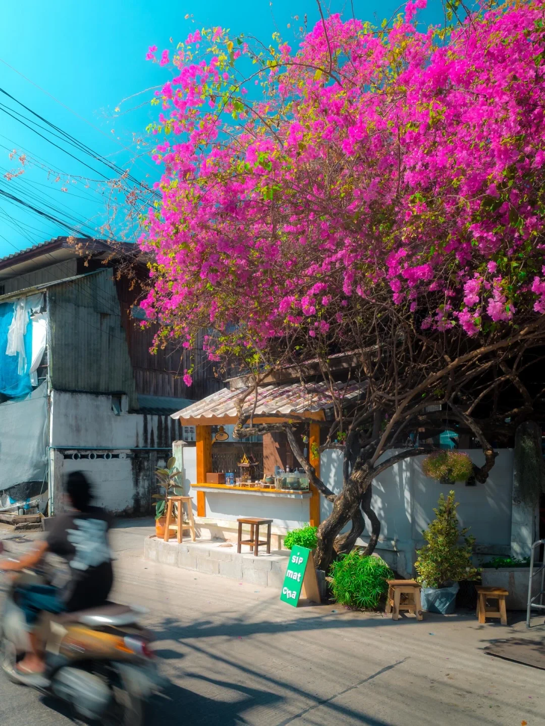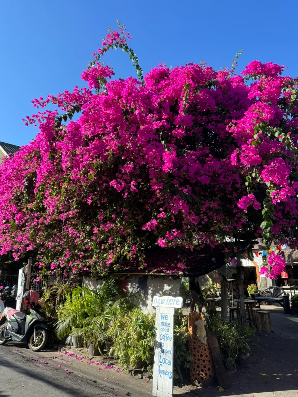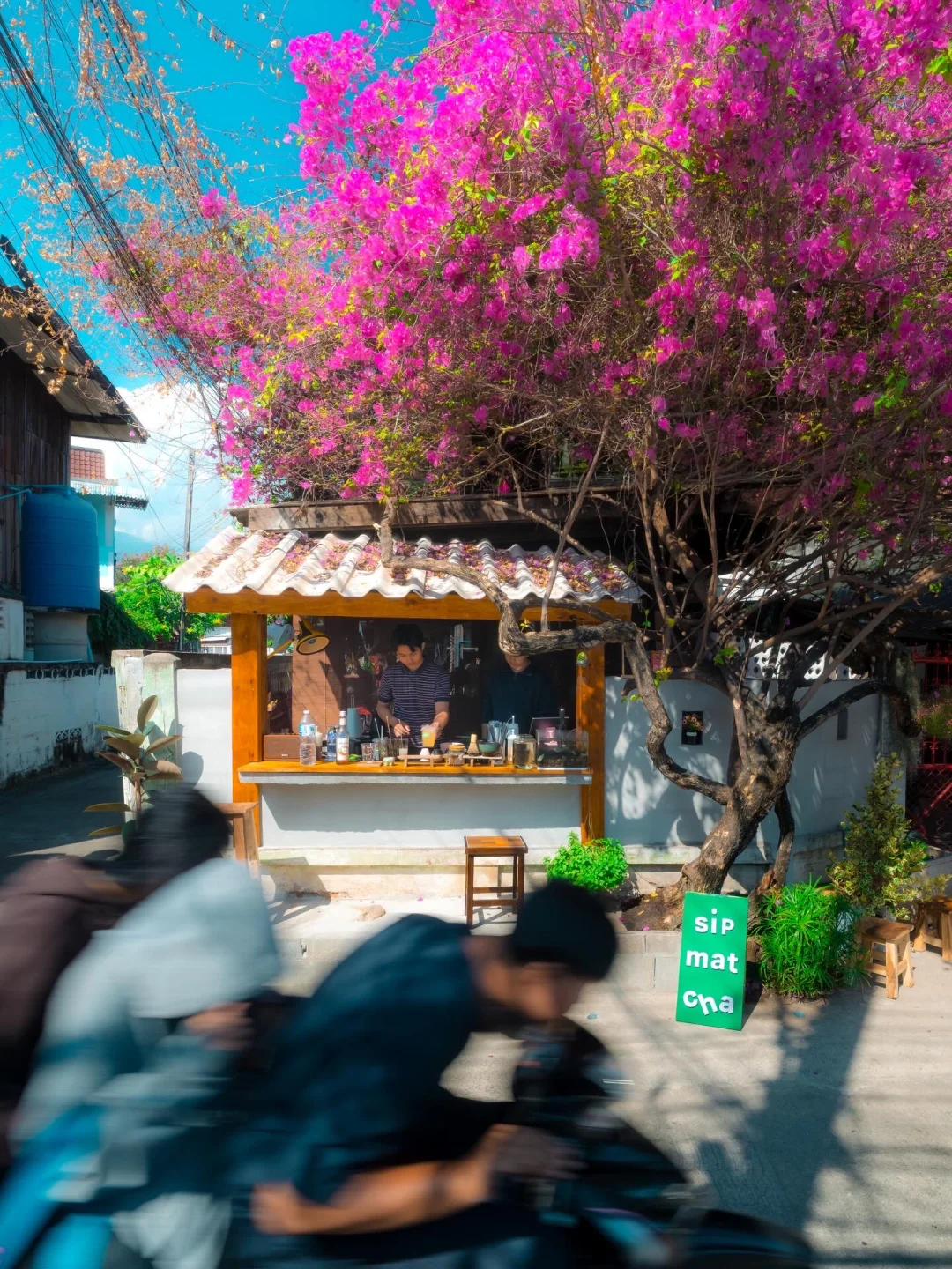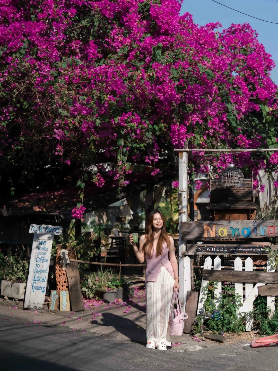 当时看到这家抹茶🍵店的时候,真的惊为天人,位于一颗粉色三角梅树下,当时花开的超级灿烂,真的太美了。点了一杯店里的饮品,也好喝!