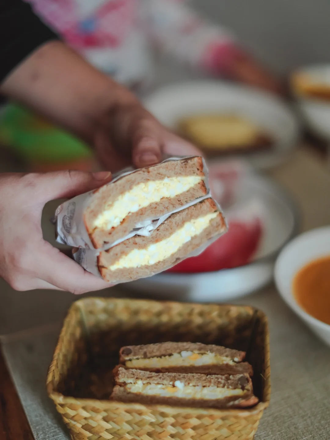 生活是由无数细节组成的,对待生活的态度,也往往藏在细节里。 昨天晚上烤的红糖核桃全麦吐司,早上煮了鸡蛋做成鸡蛋沙拉三明治,南瓜蒸熟后搅打成泥,加入鲜牛奶,热乎乎的南瓜浓汤端上桌,小朋友很喜欢!
