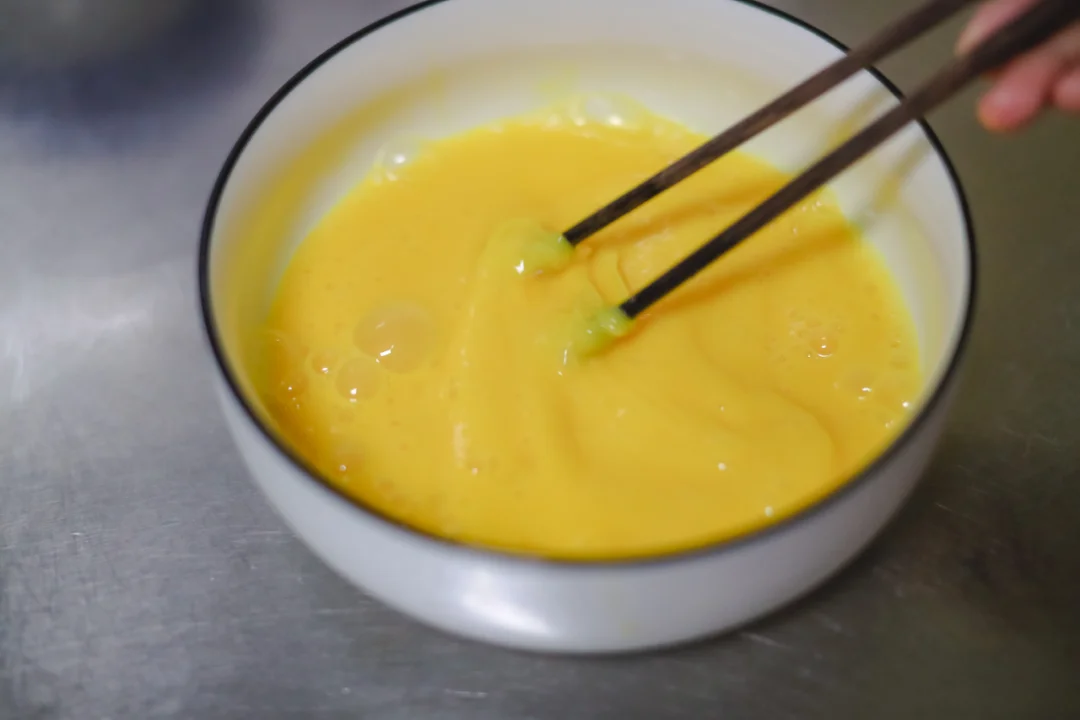 顺着一个方向,把鸡蛋搅拌均匀,加入少许的食盐,可以阻断蛋白的凝固。