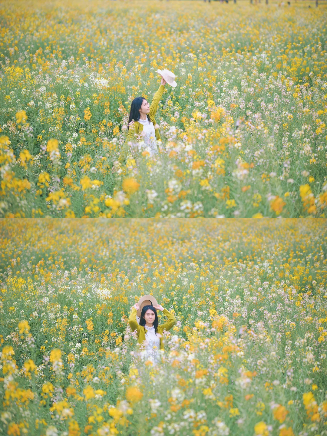罕见的七彩油菜花田就一望无际地绽放,风吹过,花海泛起层层涟漪,伴随着淡淡的花香,治愈感拉满。