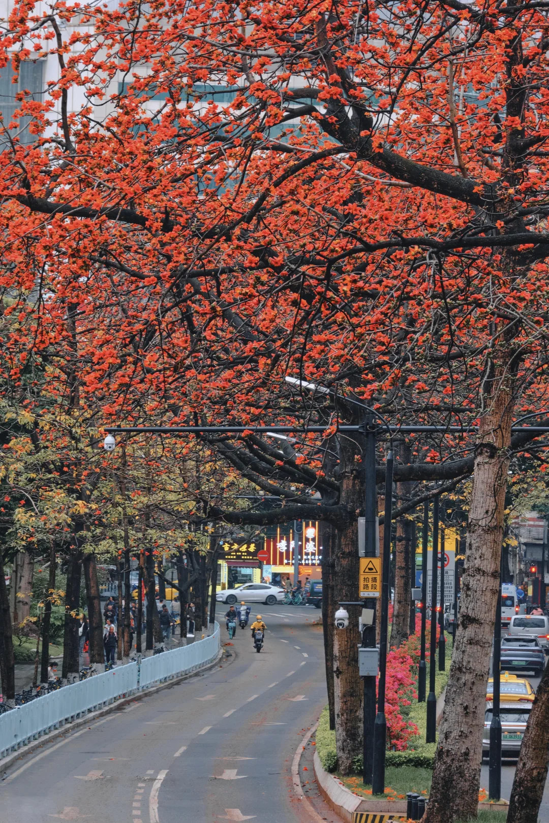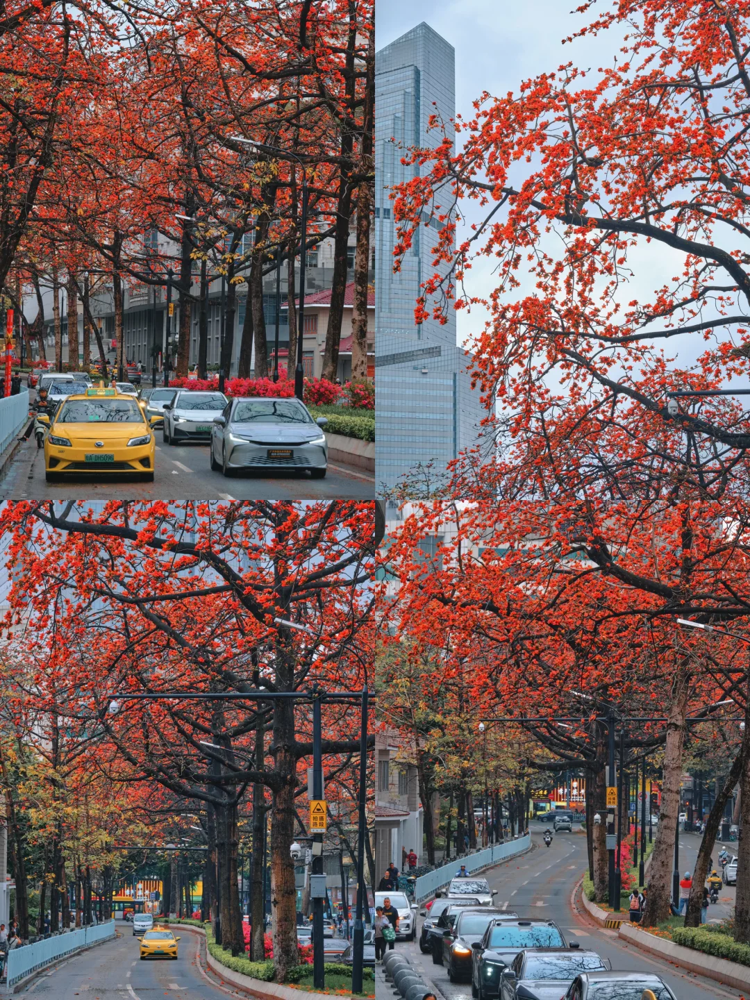 “英雄花开英雄城”仰头是300米的红云蔽日长廊,真的会被广州的木棉花大道震撼到了