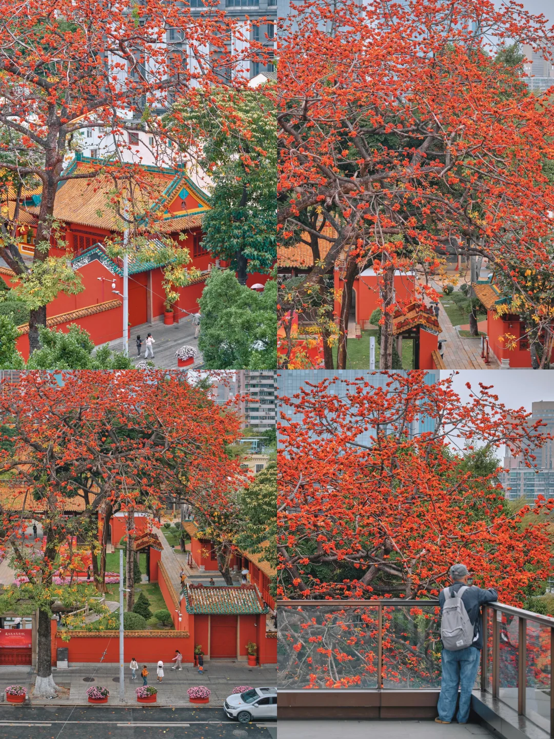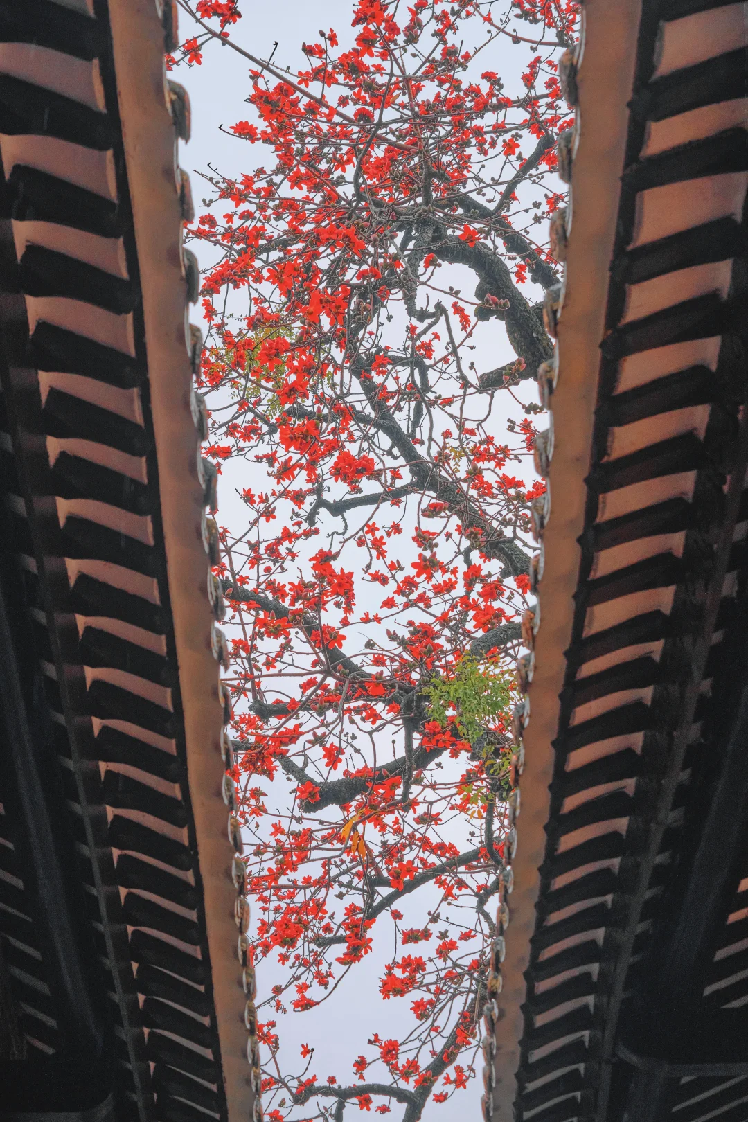 一树红棉半城春,农讲所的红墙黛瓦上开满红棉,这一幕像是刻进DNA里的热烈,仿佛时间在沉淀,花朵在燃烧。