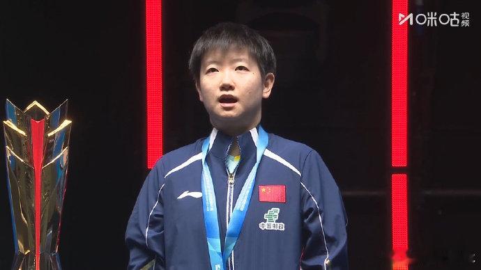 孙颖莎高唱国歌亚洲杯颁奖升起三面五星红旗