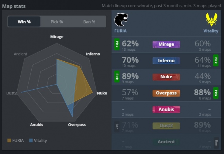 FURIA:molodoy、yuurih、FalleN、KSCERATO、YEKINDAR