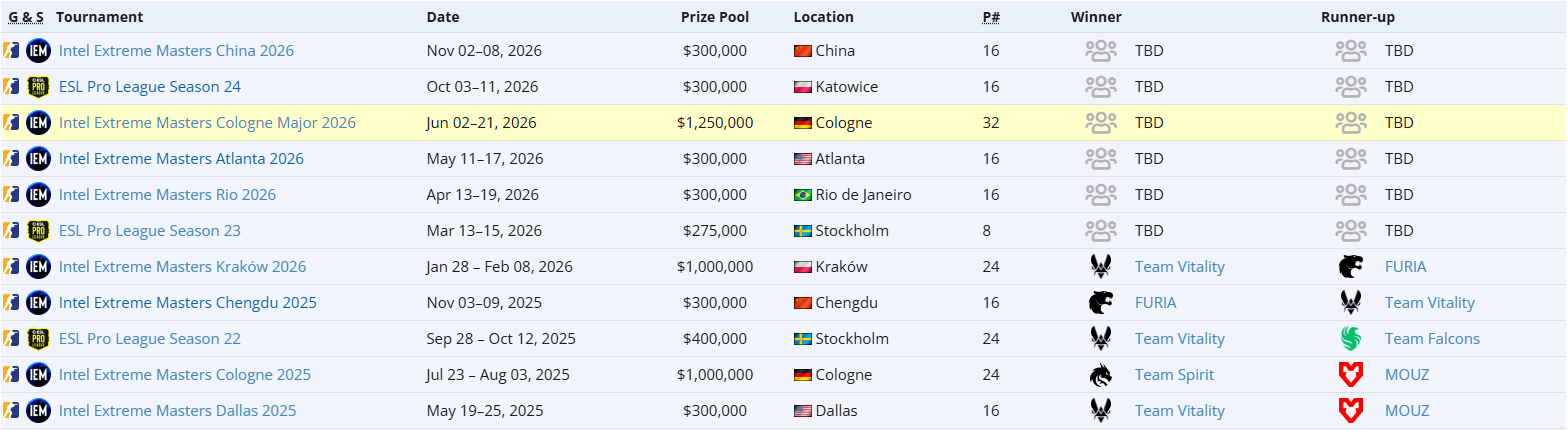 由于EPLS23包含线上小组赛阶段,Vitality已确认跳过该赛事。因此,在达拉斯站截止期限前,他们仍需在IEM里约站、IEM亚特兰大站、IEM科隆Major或EPLS24中再夺一冠。