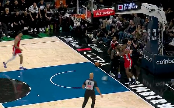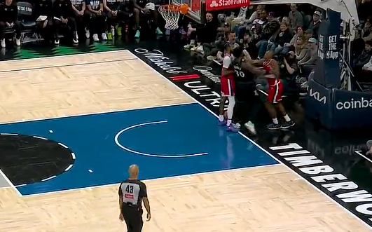 邓恩与兰德尔边线球发球争抢,发生激烈冲突