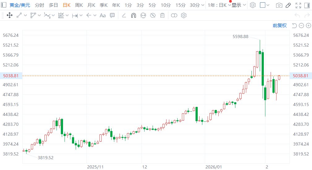 格隆汇2月9日|现货黄金重返5000美元关口上方,并在此后快速走高,现报5038美元/盎司,日内涨超1.4%。