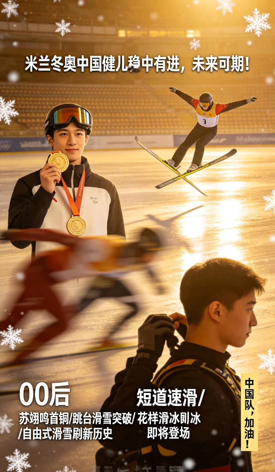 *【米兰冬奥中国健儿稳中有进,未来可期!】** 米兰冬奥战幕拉开,中国冰雪健儿稳扎稳打,捷报频传!苏翊鸣再度闪耀,摘得首枚铜牌;跳台滑雪、自由式滑雪接连突破,多项战绩刷新历史。更多“00后”小将崭露头角,成功晋级决赛,让人看见中国冰雪运动的蓬勃未来。 从传统优势到新兴项目,中国军团正多点开花。接下来,短道速滑、花样滑冰等重头戏即将登场,期待健儿们再创佳绩,满载而归! 🇨🇳✨ 不论奖牌颜色,每一次拼搏都值得喝彩。中国队,加油! 米兰冬奥 中国队加油 冰雪运动 苏翊鸣