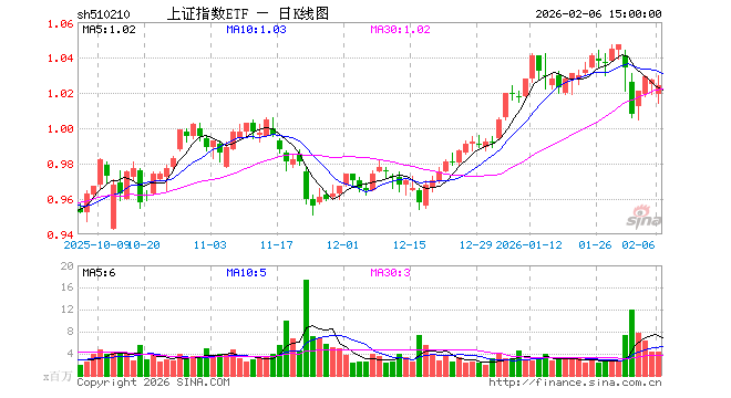 2月6日,上证指数ETF(510210)跌0.29%,成交额4.53亿元。当日份额增加6900.00万份,最新份额为68.78亿份,近20个交易日份额增加15.12亿份。最新资产净值计算值为70.35亿元。