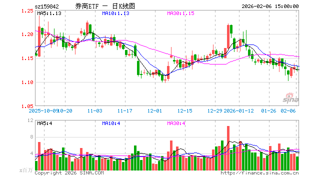 2月6日,券商ETF(159842)跌0.53%,成交额3.64亿元。当日份额增加400.00万份,最新份额为98.47亿份,近20个交易日份额增加8.70亿份。最新资产净值计算值为110.66亿元。