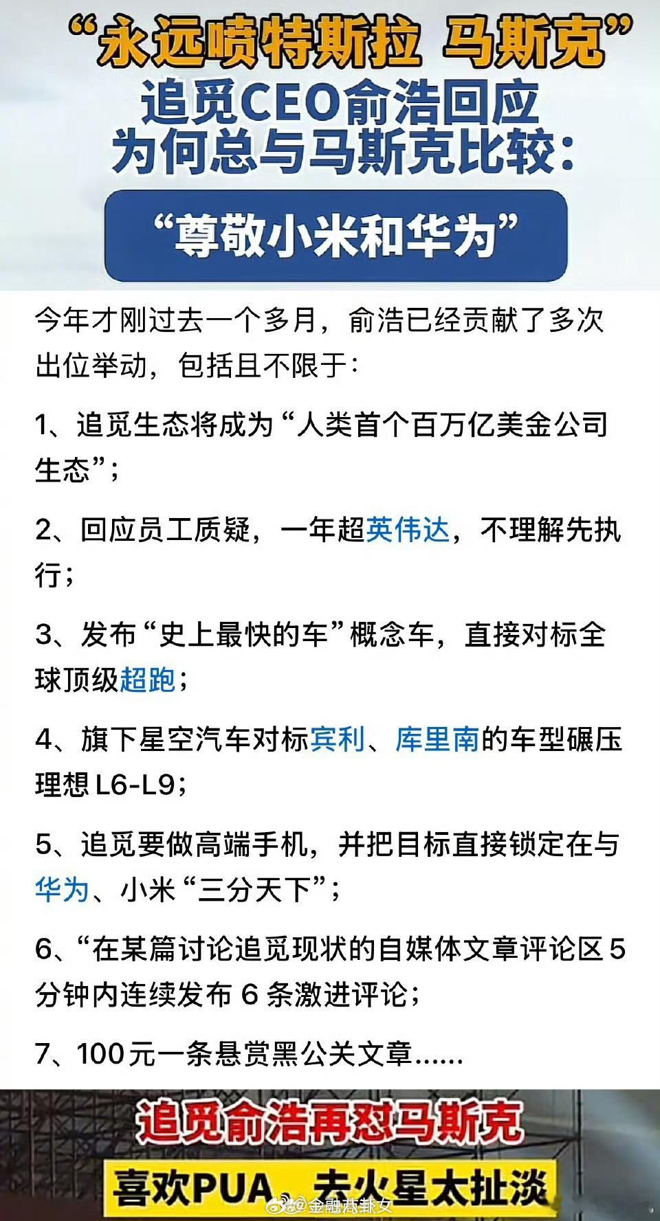 追觅CEO称五年内成为世界首富直言永远尊敬小米、华为,隔空叫板马斯克