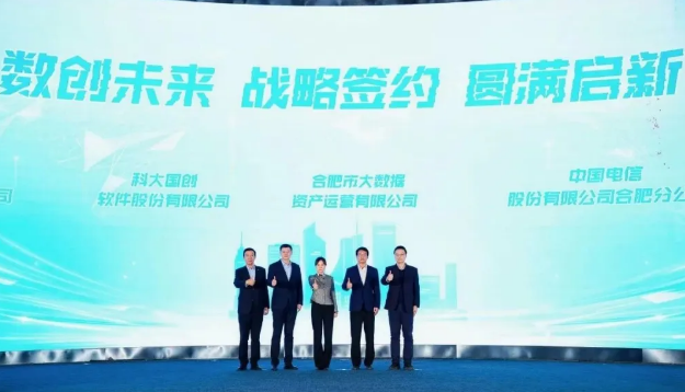 “数创未来”战略签约仪式上,中国电信股份有限公司合肥分公司、合肥市大数据资产运营有限公司、科大国创软件股份有限公司、安徽飞数信息科技有限公司、中检集团天帷信息技术(安徽)股份有限公司等五家单位携手签约。聚焦“政-产-学-研-用”协同创新、可信流通体系建设和场景驱动联合体,推动数据要素价值释放与应用落地。