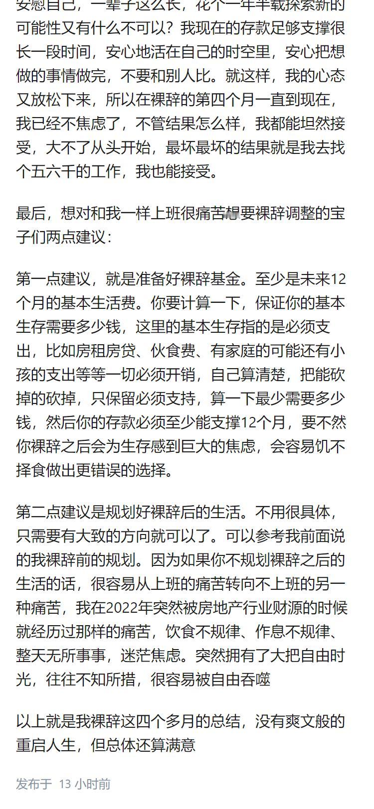 在裸辞后你过得怎么样呢?