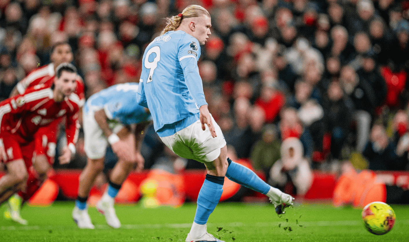 下半场,索博以一记远距离任意球破门得分,但10分钟后,队长贝尔纳多-席尔瓦将比分扳平。伤停补时阶段,哈兰德主罚点球,帮助曼城完成了逆转。