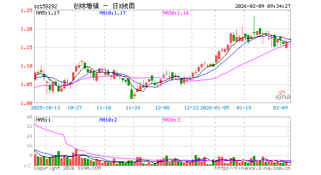 2月9日,创业板综增强ETF华宝(159292)开盘涨0.69%,报1.170元。创业板综增强ETF华宝(159292)重仓股方面,宁德时代开盘涨0.38%,中际旭创涨3.89%,新易盛涨4.37%,阳光电源涨1.34%,同花顺涨1.68%,东方财富涨0.66%,胜宏科技涨3.13%,迈瑞医疗涨0.10%,网宿科技涨3.68%。