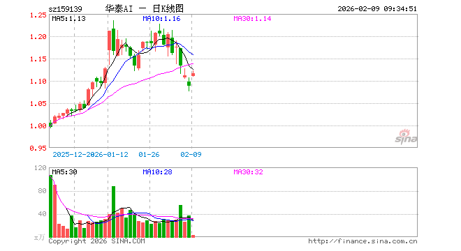 2月9日,科创创业人工智能ETF华泰柏瑞(159139)开盘涨2.02%,报1.110元。科创创业人工智能ETF华泰柏瑞(159139)重仓股方面,新易盛开盘涨4.37%,中际旭创涨3.89%,澜起科技涨4.49%,寒武纪涨2.22%,金山办公涨1.38%,芯原股份涨4.33%,昆仑万维涨7.66%,协创数据涨3.07%,北京君正涨2.71%。