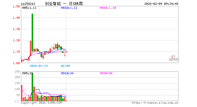 2月9日,创业板人工智能ETF招商(159243)开盘涨2.53%,报1.095元。创业板人工智能ETF招商(159243)重仓股方面,中际旭创开盘涨3.89%,新易盛涨4.37%,天孚通信涨9.50%,同花顺涨1.68%,润和软件涨1.61%,北京君正涨2.71%,昆仑万维涨7.66%,蓝色光标涨3.85%,长芯博创涨2.47%。