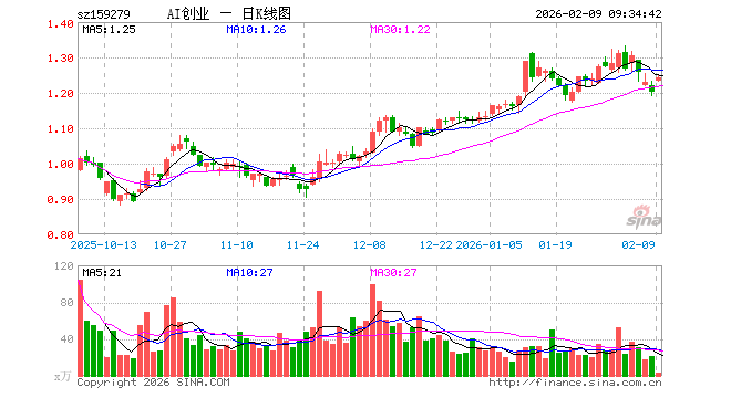 2月9日,创业板人工智能ETF华安(159279)开盘涨2.49%,报1.233元。创业板人工智能ETF华安(159279)重仓股方面,中际旭创开盘涨3.89%,新易盛涨4.37%,天孚通信涨9.50%,蓝色光标涨3.85%,协创数据涨3.07%,同花顺涨1.68%,润和软件涨1.61%,北京君正涨2.71%,昆仑万维涨7.66%。