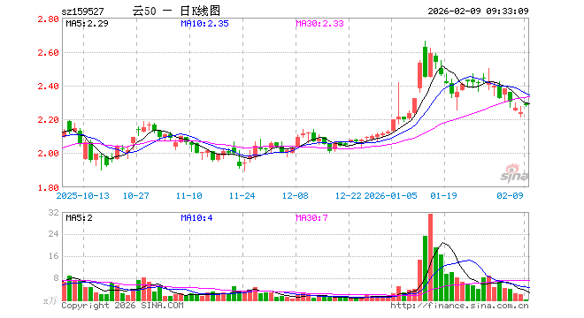 2月9日,云计算ETF广发(159527)开盘涨2.32%,报2.292元。云计算ETF广发(159527)重仓股方面,科大讯飞开盘涨1.72%,金山办公涨1.38%,新易盛涨4.37%,中际旭创涨3.89%,浪潮信息涨2.32%,中科曙光涨3.70%,紫光股份涨1.81%,恒生电子涨1.61%,拓维信息涨1.88%。
