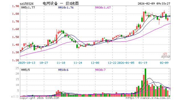 2月9日,电网设备ETF(159326)开盘涨1.38%,报1.764元。电网设备ETF(159326)重仓股方面,特变电工开盘涨1.16%,思源电气涨2.00%,国电南瑞涨0.83%,中天科技涨4.75%,亨通光电涨3.73%,宏发股份涨1.20%,正泰电器涨1.10%,金盘科技涨1.96%,东方电缆涨0.89%,中国西电涨0.68%。