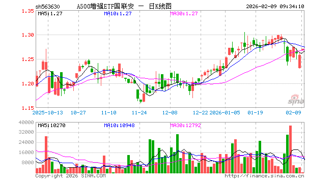 A500增强ETF国联安(563630)业绩比较基准为中证A500指数收益率,管理人为国联安基金管理有限公司,基金经理为章椹元、冯浩、何贤发,成立(2025-06-19)以来回报为25.96%,近一个月回报为-1.32%。