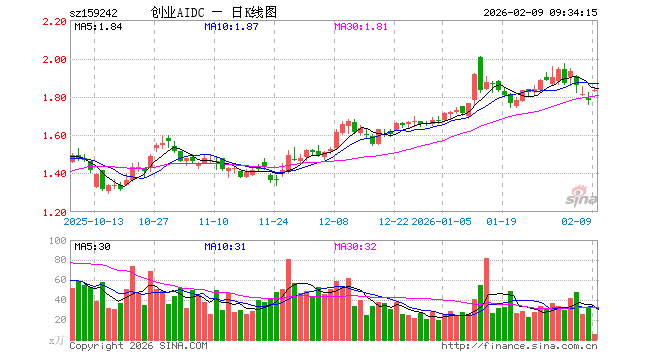 2月9日,创业板人工智能ETF大成(159242)开盘涨2.59%,报1.825元。创业板人工智能ETF大成(159242)重仓股方面,中际旭创开盘涨3.89%,新易盛涨4.37%,天孚通信涨9.50%,蓝色光标涨3.85%,协创数据涨3.07%,同花顺涨1.68%,润和软件涨1.61%,北京君正涨2.71%,昆仑万维涨7.66%。
