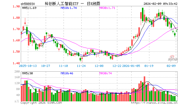2月9日,科创板人工智能ETF(588930)开盘涨2.31%,报1.680元。科创板人工智能ETF(588930)重仓股方面,金山办公开盘涨1.38%,澜起科技涨4.49%,寒武纪涨2.22%,芯原股份涨4.33%,石头科技涨0.77%,晶晨股份涨1.75%,复旦微电涨1.73%,恒玄科技涨1.51%,中科星图涨2.76%,云天励飞涨2.03%。