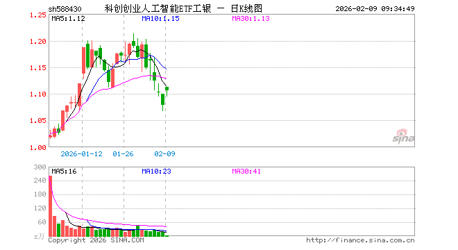 科创创业人工智能ETF工银(588430)业绩比较基准为中证科创创业人工智能指数收益率,管理人为工银瑞信基金管理有限公司,基金经理为杨广钊,成立(2025-12-17)以来回报为7.54%,近一个月回报为-0.47%。