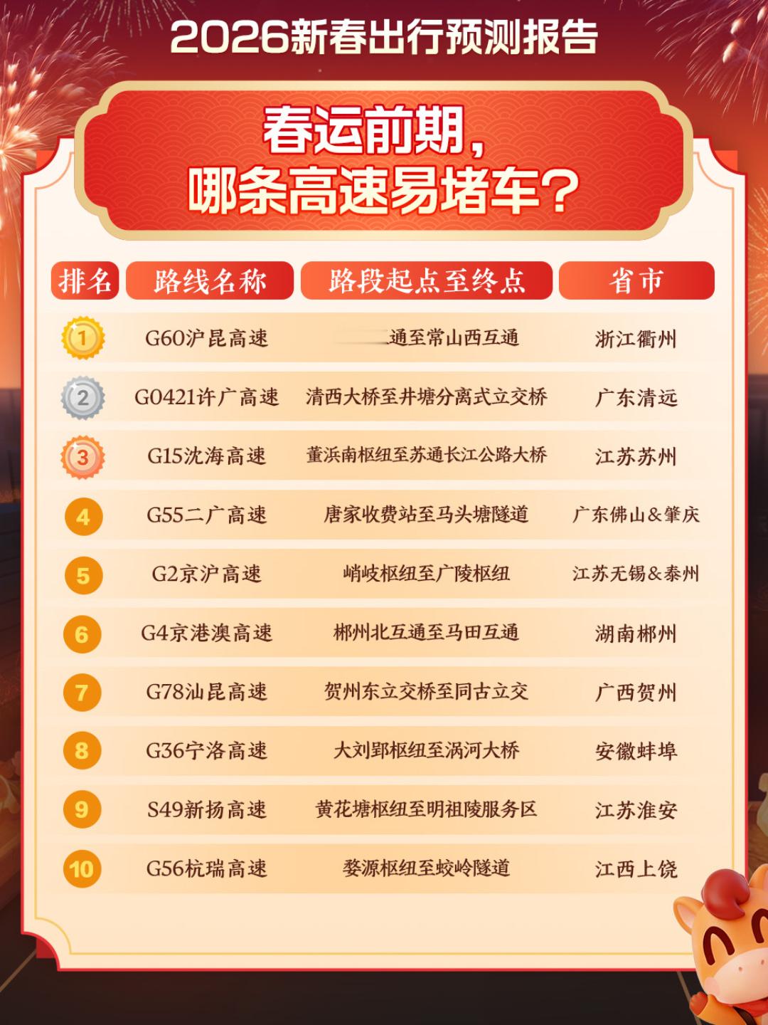 这个春节最添堵的地方都被预判了 2026年新春出行预测报告出来了,广东、河南、四川成为春运前期最受欢迎省份,高速易堵车路段也被提前预判到了,过年开车党们最担心的应该是就是排着长队的收费站和拥堵的高速公路了吧,不想被堵一定要提前规划好行程及时避开拥挤路段,有了这个春节出行预测感觉像开了上帝视角,这个春节让所有人都能顺顺利利返乡!