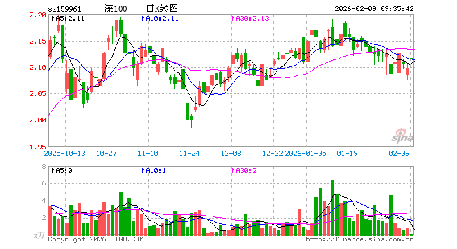 2月9日,深100ETF方正富邦(159961)开盘涨0.91%,报2.116元。深100ETF方正富邦(159961)重仓股方面,宁德时代开盘涨0.38%,中际旭创涨3.89%,新易盛涨4.37%,美的集团跌0.45%,东方财富涨0.66%,立讯精密涨1.60%,阳光电源涨1.34%,比亚迪涨0.76%,五粮液跌0.19%,胜宏科技涨3.13%。