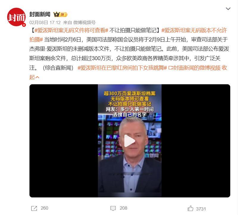 🔻不仅不让议员们拍摄,也不让带助手,只能记笔记。🔻议员老爷们什么时候吃过这种苦,坐电脑前查一下自己的名字、对手的名字、特朗普、老公/老婆的名字就蒜鸟,都不容易。爱泼斯坦案无码版本不允许拍摄热点现场海外新鲜事