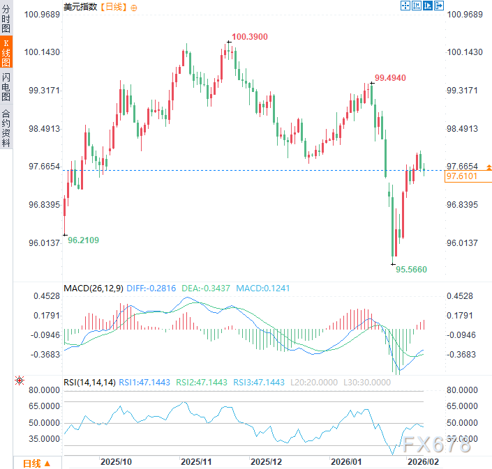 上周,美元买盘主要受避险情绪驱动,该情绪在当周多数时间令金属承压。直至上周五逢低买盘出现,市场才对当周早些时候公布的较为疲软的劳动力市场数据做出延迟反应,美元走势也随之调整。周一亚市时段,美元指数于97.60附近窄幅震荡。