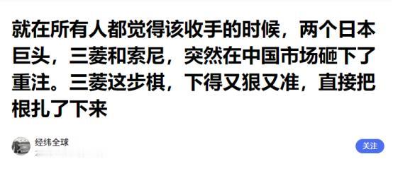 就在所有人都觉得该收手的时候,两个日本巨头,三菱和索尼,突然在中国市场砸下了重注。 先说说三菱,他们干了件大事:把工业自动化业务的中国总部,整个搬到了苏州。这可不是简单开个分厂那么简单,三菱这次是把 “大脑” 都搬过来了。以前很多外资企业,只是把中国当成销售市场或者生产基地,研发、产品策划这些核心活儿还在本国做。 但三菱不一样,这次迁移包含了产品策划、研发、供应链管理所有关键部门,以后三菱在中国卖的工业自动化设备,从最初的想法到最后一个零件,都是在中国完成的,真正实现了 “中国原创”。三菱的负责人也说了,这是要推进 “产销研一体化”,真正扎根中国市场。 这边三菱刚落定,索尼也跟上了节奏。很多人以为索尼要放弃电视业务了,毕竟现在中国家电市场竞争太激烈,但索尼没关业务,反而找了个新路子,和中国的 TCL 合作。两家要一起成立一家新公司,专门做电视机和家庭音响这些产品。 最有意思的是股权比例,TCL 占 51%,索尼占 49%。这意味着,以后索尼电视从设计、生产到销售,主要都由 TCL 来操盘,索尼则发挥自己在音视频技术和品牌方面的优势。TCL 的负责人也表示,这是双方整合优势资源,一起把业务做得更大的好机会。 这两件事看着不一样,其实背后是一个道理:这些日本巨头不再走过去的老路,而是要往中国的产业链深处走。以前他们在中国大多是 “卖产品”,现在变成了 “扎根本土”,要么自己建完整的运营体系,要么找中国企业深度合作。 为啥他们要这么做?首先得看清中国市场的变化。以前日企靠技术和品质优势,在中国市场很吃香,但现在不一样了。 中国本土企业越来越强,就拿工业自动化领域来说,汇川技术这些中国企业的市场份额已经超过了三菱,伺服系统、逆变器这些核心产品,国产率越来越高。 家电市场更是如此,海尔、美的这些国产品牌已经占据了 72% 的市场份额,日系品牌加起来还不到 8%。如果还按以前的模式,只把中国当销售市场,肯定站不住脚。 其次,中国的产业链优势太明显了。现在中国不只是制造大国,产业链特别完整,从研发、生产到供应链管理,都能找到最配套的资源。三菱把工业自动化总部搬来苏州,就是因为中国有庞大的制造业需求,本地化研发能更快响应客户需求,而且供应链也能更高效,降低成本。 索尼找 TCL 合作,也是看中了 TCL 的优势 ——TCL 有先进的显示技术、完善的产业布局和全球销售渠道,能把产品从设计到销售的全流程做得更高效,索尼则能集中精力做自己最擅长的技术研发和品牌运营,双方都能受益。 还有一个重要原因,就是日企在做战略调整。最近几年,很多日企在华布局呈现 “高端留、低端撤” 的特点,那些竞争激烈、利润低的领域他们慢慢退出,但在智能制造、高端电子这些高科技领域,反而加大投资。 三菱的工业自动化、索尼的高端电视,都是他们的优势业务。而且中国市场的需求还在增长,2025 年一季度中国工业机器人销量就增长了 11.6%,市场潜力依然很大。他们知道,只有真正扎根中国,融入中国的产业链,才能抓住这些机会。 可能有人会问,索尼让 TCL 占股 51%,不怕失去控制权吗?其实这正是索尼的聪明之处。现在中国市场变化快,消费者需求也越来越多元,让更懂中国市场的 TCL 来操盘运营,能更快适应市场变化。 索尼保留 49% 的股份,同时输出自己的核心技术和品牌,既不用承担全部运营压力,又能借助 TCL 的优势扩大市场,属于双赢。 三菱和索尼的这些动作,也给其他外资企业提了个醒:现在想在中国市场立足,不能再抱着以前的老观念了。中国已经不是单纯的 “世界工厂”,而是有完整产业链、庞大消费市场和优秀本土企业的 “核心阵地”。 只有真正深入中国的产业链,要么像三菱一样自己建完整的本土运营体系,要么像索尼一样找中国企业深度合作,才能长久发展。 对我们普通消费者来说,这也是好事。三菱本地化研发后,产品会更贴合中国制造业的需求;索尼和 TCL 合作后,电视产品可能会在保持索尼技术优势的同时,价格更亲民、服务更到位。 而对中国企业来说,这样的合作也是学习先进技术和管理经验的机会,能让我们自己的产业链越来越强。 总的来说,三菱搬总部、索尼找搭档,不是一时冲动,而是看清市场趋势后的理性选择。这也说明,中国市场的吸引力不是减弱了,而是变得更有深度了。 未来,会有更多外资企业选择往中国产业链深处走,而中国市场也会因为这种深度融合,变得更加繁荣。