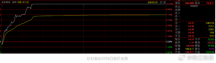 2月6日早盘,杉杉股份股价早早封于涨停,全天成交金额达到25.3亿元,全天换手率9.84%。显然有资金提前得到内幕消息。成交龙虎榜显示,买入前五位的资金达到5.987亿元,占当天成交金额的近四分之一,其中买入榜第一位为沪股通专用席位,买入金额2.73亿元;买入第二位为爱建证券上海浦东新区前滩大道营业部;第三至第五位均为量化基金席位。