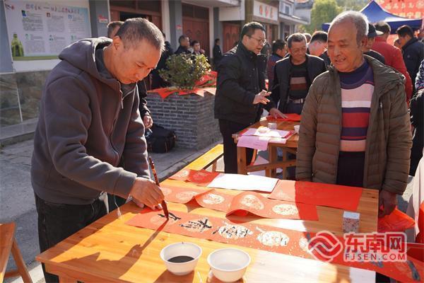 走进现场,各个区域的热闹劲儿扑面而来!“福助区”里暖意最浓,政策宣讲、普法咨询、就业推荐轮番上阵,免费义诊、公益剪发更是排起了小长队;“福味区”香气扑鼻,大龙擂茶、暖心腊八粥暖胃又暖心,八仙崖茶叶、本土山茶油等农特产品整齐陈列,引来不少乡亲驻足咨询;“福墨区”墨香四溢,书法爱好者们挥毫泼墨、笔走龙蛇,一副副饱含新春祝福的春联,刚写好就被乡亲们开心领走,把年味和福气带回家;“福影区”定格美好,专业摄影师拿起镜头,为乡亲们拍摄温馨全家福,三明城市吉祥物公仔现身“卖萌”,氛围感直接拉满;猜灯谜环节更是趣味十足,乡亲们踊跃参与、互帮互助,不时传出阵阵欢呼声。