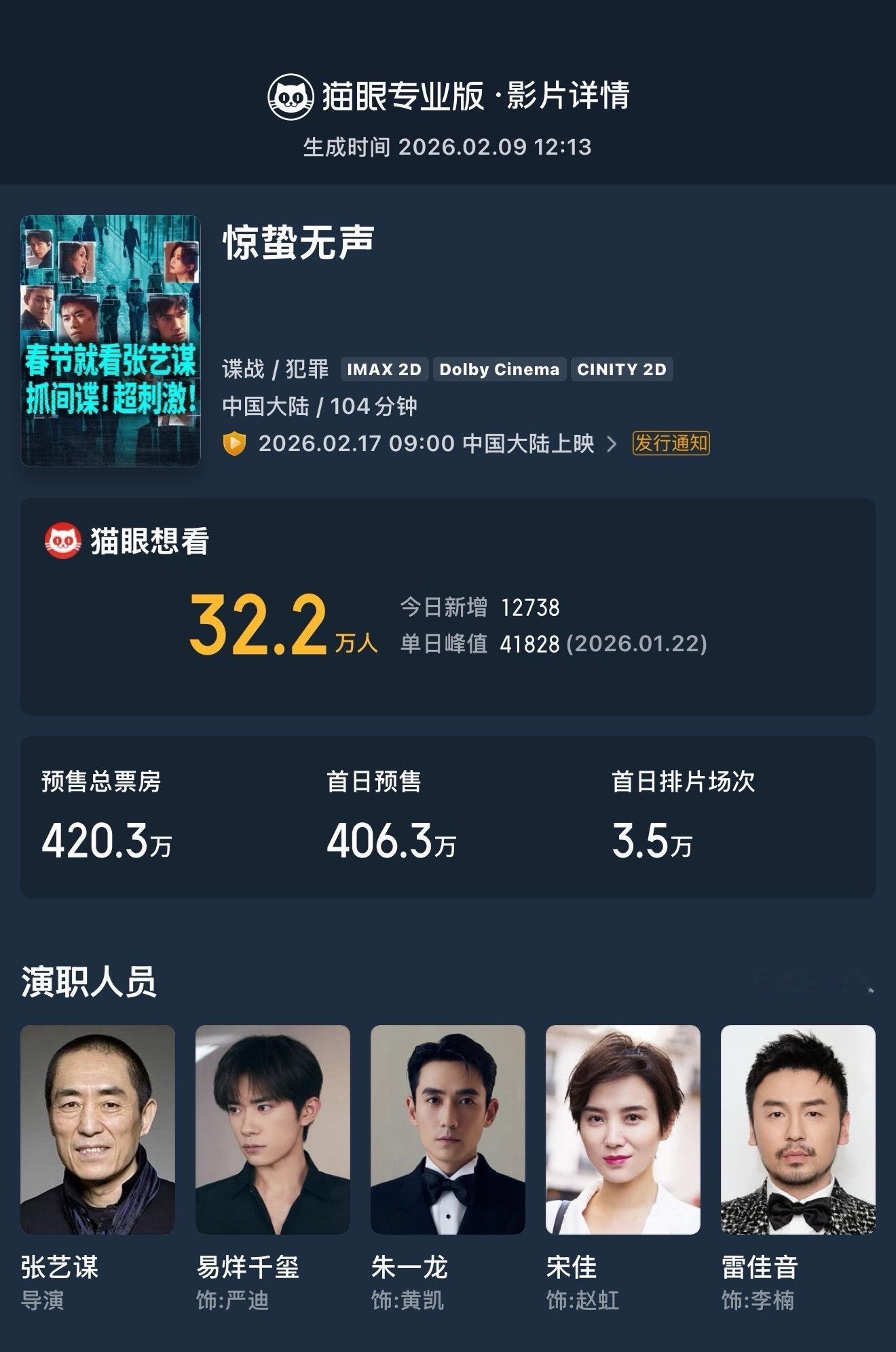 时代峰峻包场支持惊蛰无声时代峰峻包场支持易烊千玺刘耀文新片 据猫眼专业版云包场显示,包场支持电影《惊蛰无声》。影片由易烊千玺、朱一龙领衔主演,宋佳领衔主演,雷佳音、杨幂主演,张译友情出演,刘诗诗特别出演,刘耀文特别出演,林博洋主演,预售已开启,将于大年初一全国上映。