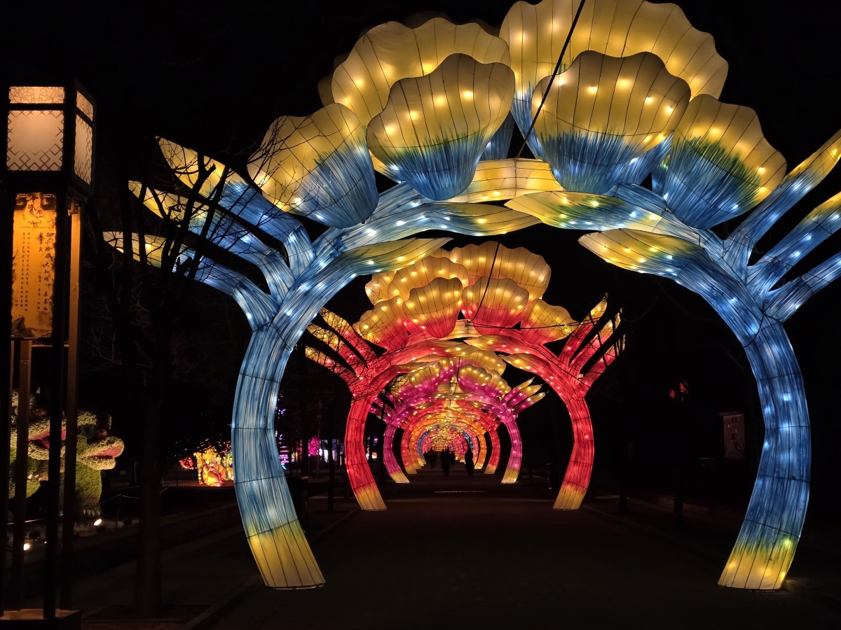 今年的灯组设计尤为别致。以“金丝贯顶”“银丝贯顶”等名品牡丹为灵感打造的造型灯组,将与园内百花、蝶鸟共同勾勒出一幅生机盎然的满园春景。“幻彩花楹”灯组取意“花影摇楹,幻彩流光”,将春日灵动与繁华盛景凝于光影之间;“雀翎花瀑”灯组中,孔雀翎羽如瀑倾泻,与繁花相映,营造出如梦似幻的视觉画卷;而“天下黄河洛阳美”灯组,则以灯光再现大河奔涌的壮丽景象,展现山河气象……