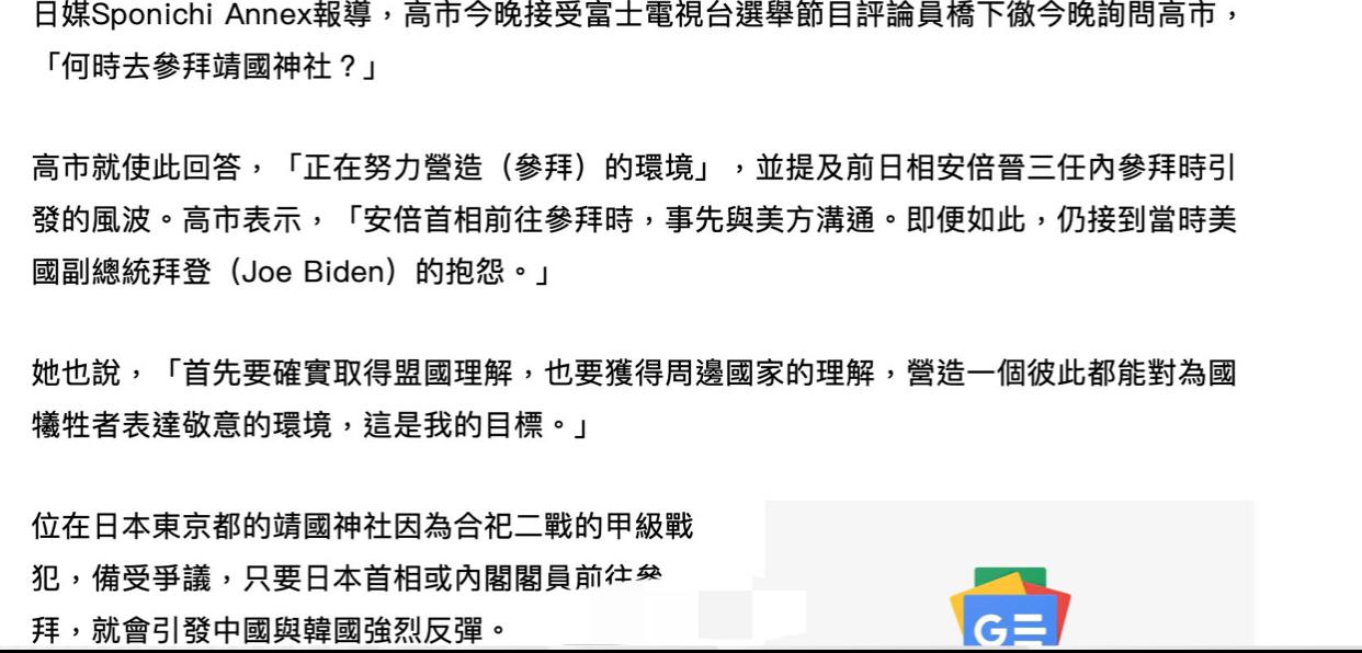 日本高市早苗在回应何时去参拜靖国神社时表示:“我正在努力营造可以去参拜的环境,首先要获得盟国美国的支持和理解,以及中国、韩国等周边国家的理解,营造一个彼此都能对为国牺牲者表达敬意的环境,这是我的目标。”
