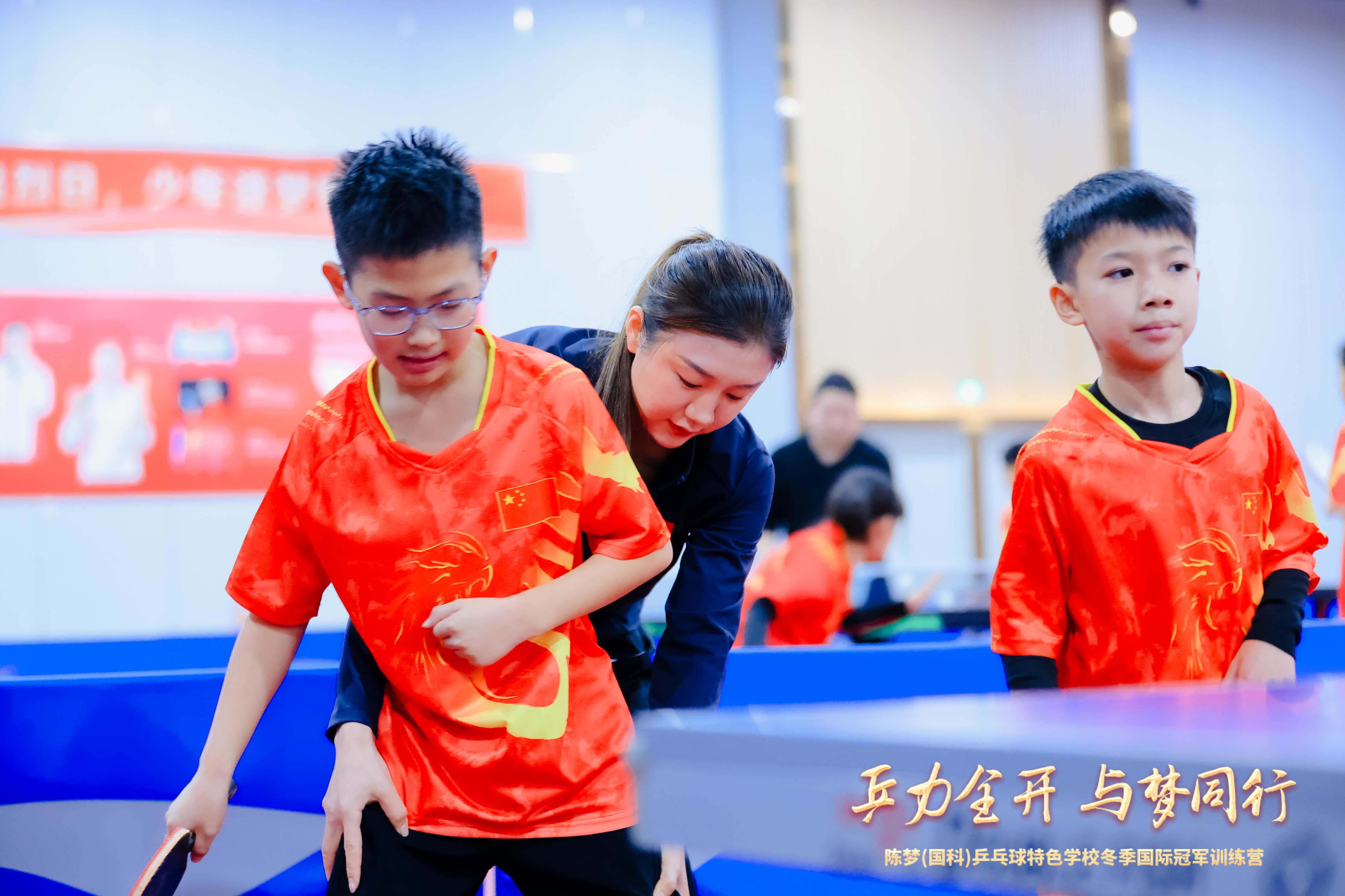 陈梦陈梦(国科)乒乓球特色学校,冬季国际冠军训练营(指导图)