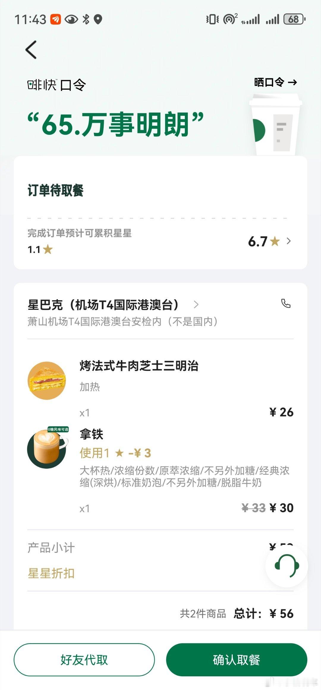 有在杭州萧山机场的朋友吗?有今天要在萧山 T4 坐飞机的朋友吗?可以到 T4 国际安检内拿我点的咖啡我下错门店了这会登机了