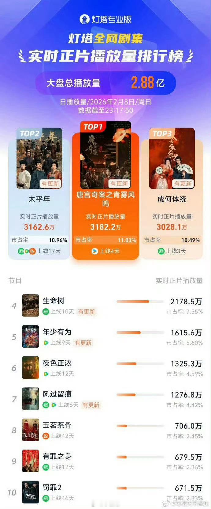 唐宫奇案之青雾风鸣 我的评分:唐宫奇案播放量登顶唐宫奇案实至名归!《唐宫奇案》热度破万、播放量登顶,剧情高能、全员演技在线,不愧是开年好剧,上👖追剧安排!