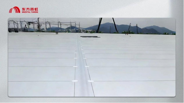 作为高精密制造业的核心领域,锂电池生产对环境要求极为严苛,温湿度稳定性、长期防护可靠性直接决定产品质量与生产安全,这也使得项目对建筑防水材料及系统解决方案的要求远超普通工业场景,成为高端工业防水企业的实力试金石。据悉,东方雨虹应用于该项目的外露增强型TPO防水卷材,精准契合锂电池生产的特殊需求,兼具耐候耐久、高强度、抗撕裂、耐化学腐蚀等优异特性,可从容应对厦门高温高湿、强紫外线照射的复杂气候条件,为厂房及配套设施提供长效防水防护。此外,该卷材采用热风焊接工艺,可实现搭接缝分子级融合,大幅提升密封可靠性,有效规避渗漏风险,同时其浅色表面能高效反射日光,助力项目降低建筑能耗,契合新能源产业绿色发展理念,实现防水防护与节能降耗的双重价值。