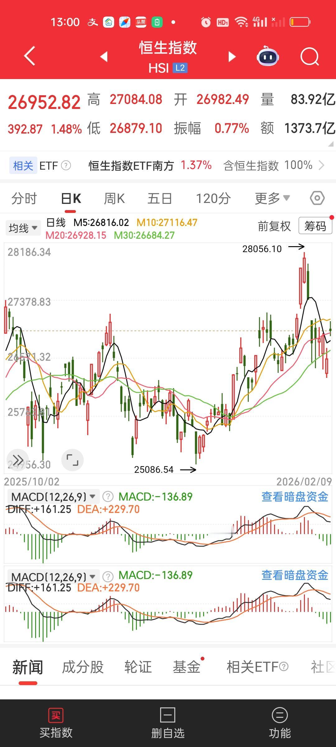 港股今天的走势要比想象的要弱不少,特别是恒科原以为最少可以涨2%,结果只涨了1.12%。恒指中午收盘在10日线下方在其它所有均线上方。恒科在5日线上方,在其它所有均线下方。总体来看,今天走的偏弱!另外大家不要给我发私信了,我回不了!