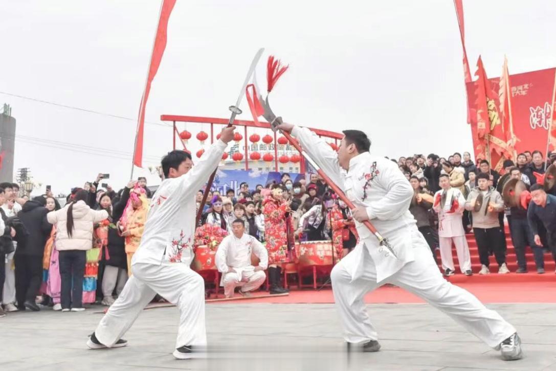 非遗民俗板块作为核心亮点,集中呈现地域文化根脉。群众现场可体验木版年画、剪窗花等非遗技艺,品尝乡土美食,观赏舞龙舞狮、挑花篮、跑竹马、打扇鼓等民俗展演。各乡镇同步举办梅花拳交流会、大红拳武术大会、非遗长桌宴、非遗大集等特色活动。