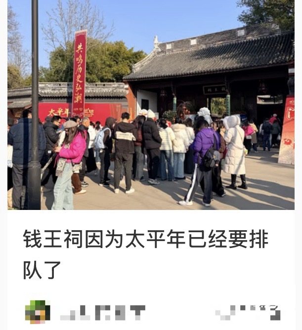 随着《太平年》的热播,“来杭州,过太平年”也成了旅游新风潮,有网友昨日在社交平台爆料,钱王祠因为《太平年》已经要排队了,并晒出了现场照片。
