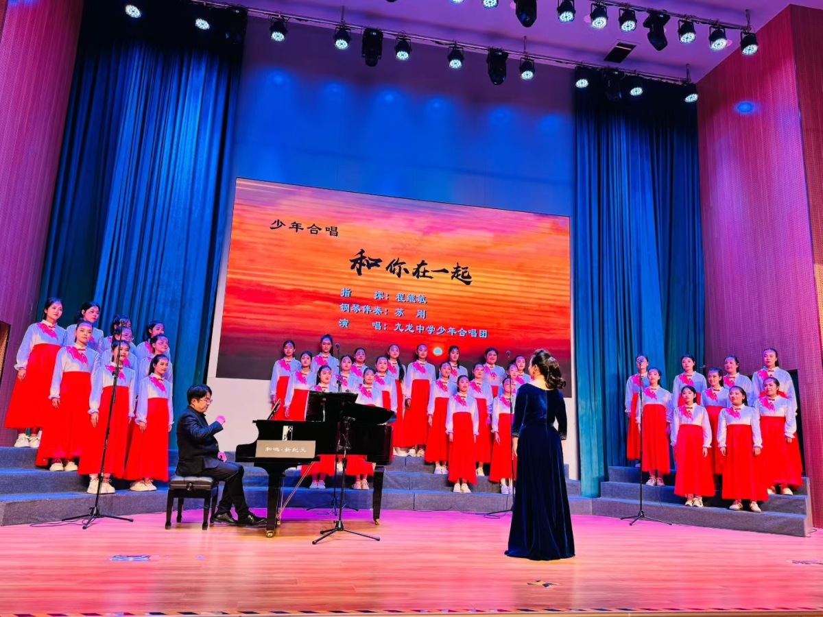 经典民乐独奏环节亮点纷呈,二胡独奏《赛马》节奏铿锵、技法娴熟,奔腾的骏马仿佛跃然眼前,将演出氛围推向小高潮;古琴吟唱《蒹葭》古韵悠长,琴音与吟唱交织,再现《诗经》经典的浪漫与厚重,实现传统文化的现代表达。少年合唱《和你在一起》充满青春朝气,展现叶县青少年昂扬向上的精神风貌;男声独唱《大江东去》慷慨豪迈,唱出千古文人的豁达胸襟;女声三重唱《贝加尔湖畔》空灵舒缓,男声独唱《我像雪花天上来》高亢深情,钢琴独奏《奇艺石雕》灵动精巧,女声合唱《山楂树》温婉抒情,不同风格的声乐与器乐表演交替呈现,为观众带来全方位、多层次的听觉享受。